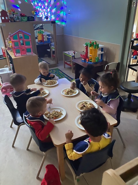 Nous avons au CPE une cuisinière sur place qui confectionne les repas et les deux collations des enfants. Notre menu est adapté en fonction des allergies alimentaire ou des intolérances. Nous avons aussi un menu végétarien servi tous les jours pour les familles qui suivent ce régime.